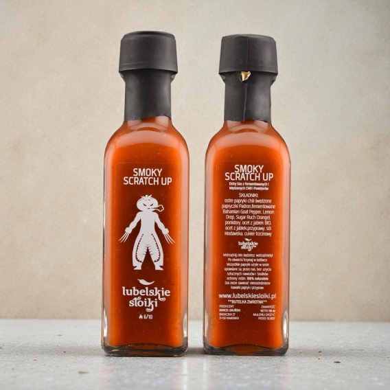 Składniki: ostre papryki chili (wędzone papryczki Padron, fermentowane Bahamian Goat Pepper, Lemon Drop, Sugar Rush Orange), pomidory, ocet z jabłek BIO, przyprawy, sól kłodawska, cukier trzcinowy